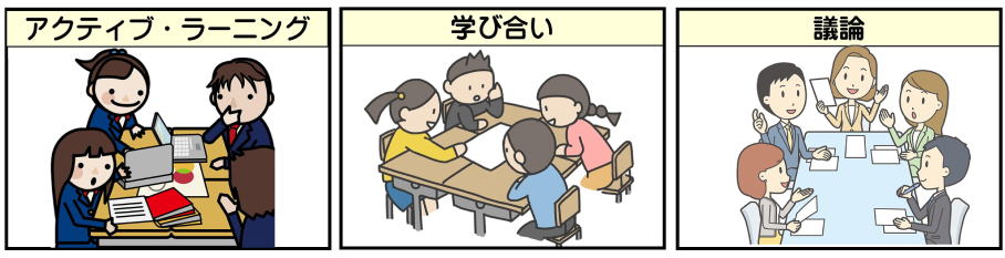 | 主体的・対話的で深い学びは、「アクティブラーニング」、「学び合い」、「議論」などの要素がすべて入っていると考えられます。 |